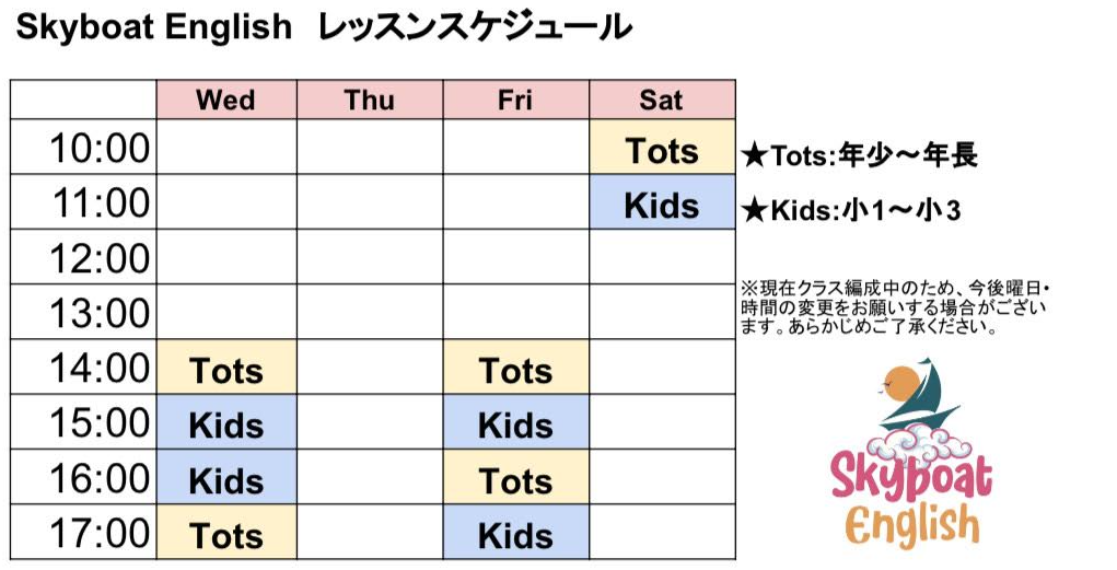 スカイボート・キッズでは、トッツクラスで築いた基礎をさらに発展させ、英検Jr.シルバーのトピックに合わせたカリキュラムを組んでいます。