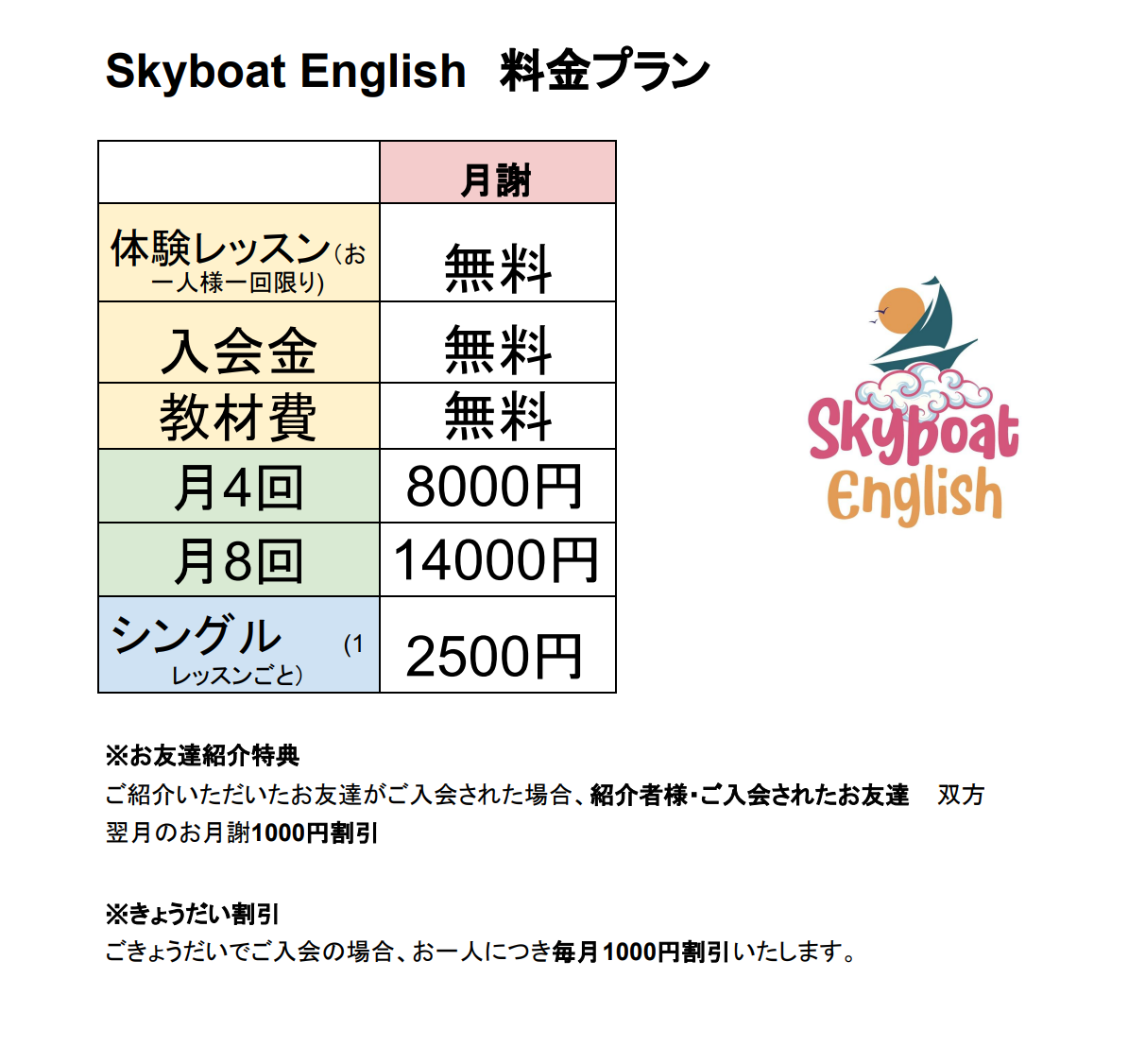 無料体験レッスンのご予約は、skyboatenglish@gmail.comからご連絡ください。